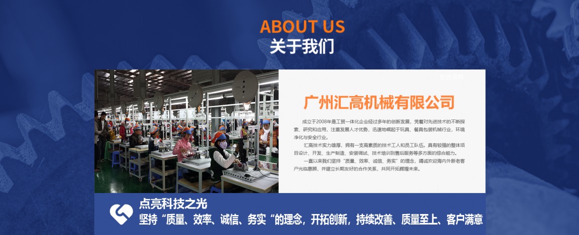 廣州匯高機械設備有限公司,成立于2008年是工貿(mào)一體化企業(yè)經(jīng)過多年的創(chuàng)新發(fā)展,憑著對先進技術的不斷探索、研究和應用,注重發(fā)展人才優(yōu)勢,迅速地崛起于玩具、餐具包裝機械行業(yè),環(huán)境凈化與安全行業(yè)。
